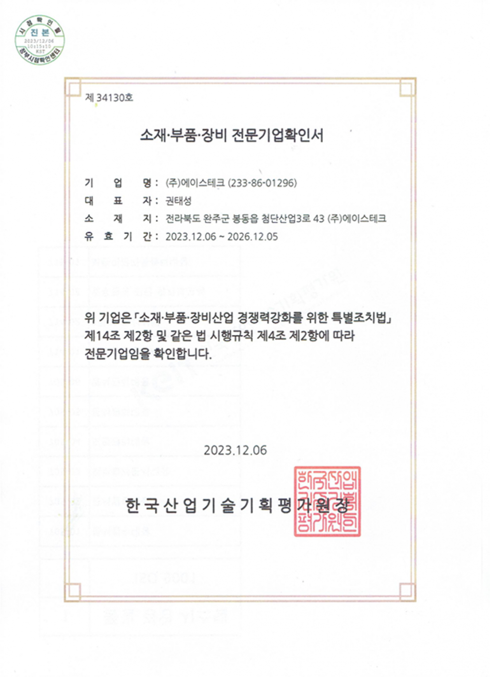 소재부품장비전문기업확인서